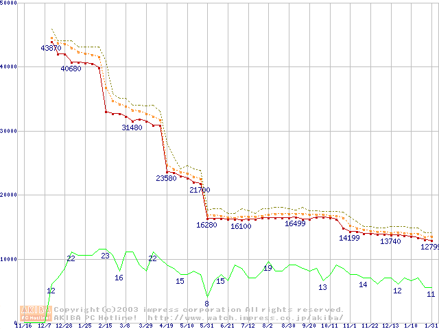 Athlon XP 2700+ (2.17GHz) リテールパッケージの価格推移
