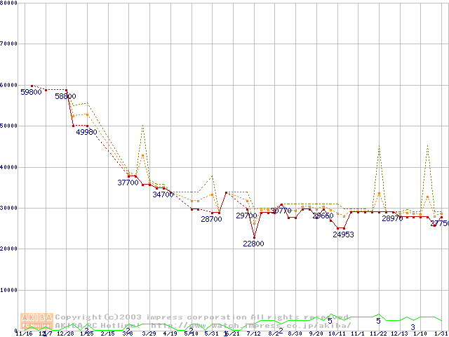 PC2700(DDR333) DDR SDRAM DIMMの最安値推移