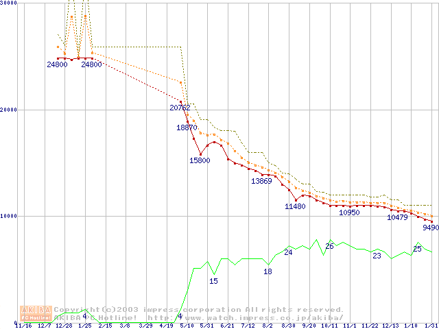 DiamondMax Plus 9 (7200rpm,8MB,SerialATA/150,FDB)の最安値推移