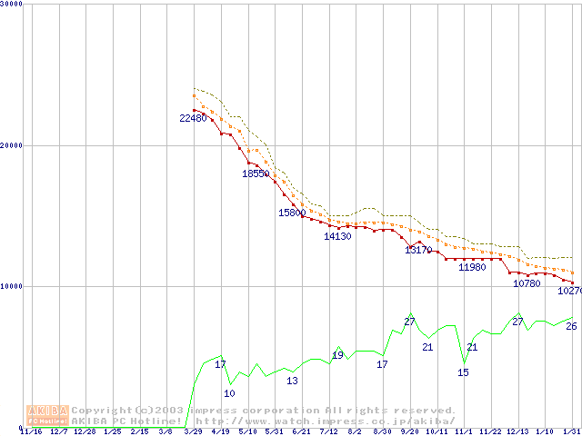 Barracuda 7200.7 (7200rpm,UltraATA/100,2MB,80GB/Platter,FDB)の最安値推移
