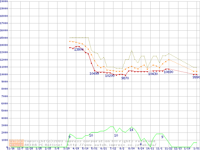 Travelstar 80GN IC25N020ATMR04 (20GB)の価格推移