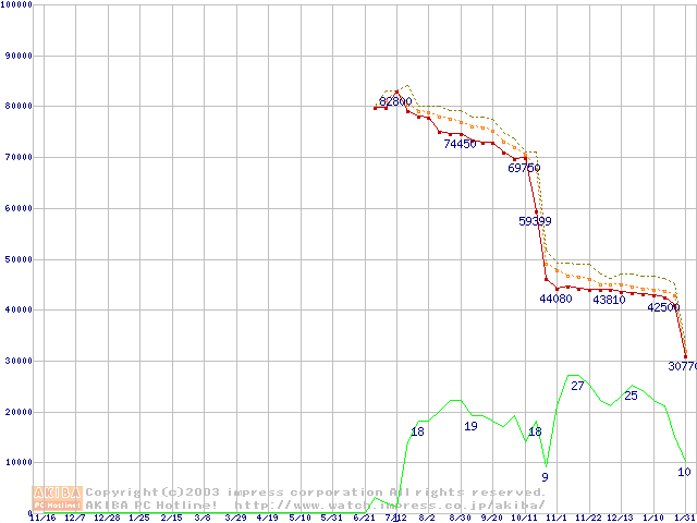 Socket 478 (micro-PGA,FSB 800MHz,L2 512KB,Hyper-Threading,Northwood)の最安値推移