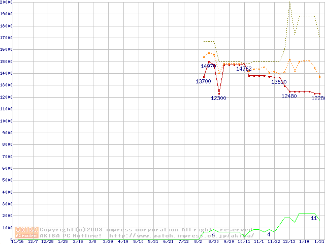 PC3200(DDR400) DDR SDRAM DIMM ECC対応 Registeredタイプの最安値推移