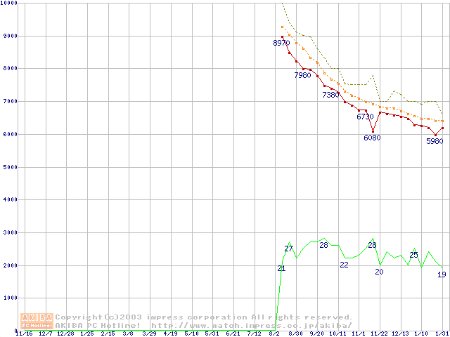 Deskstar 7K250 (7200rpm,UltraATA/100,FDB)の最安値推移