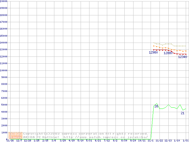 Socket 478 (micro-PGA,FSB 400MHz,L2 128KB,Northwood)の最安値推移
