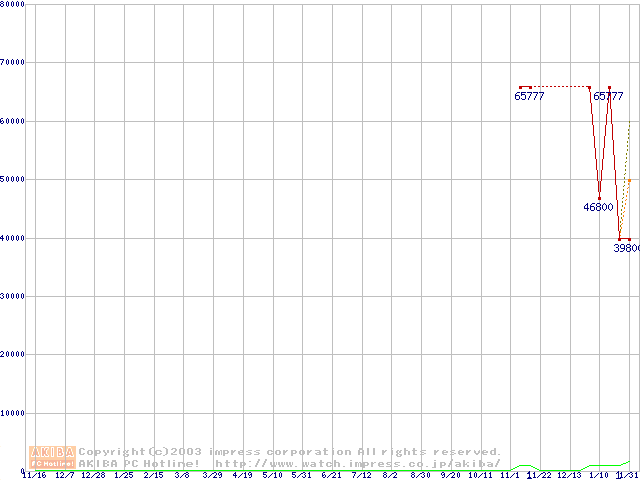 PC3200(DDR400) DDR SDRAM DIMM ECC対応 Registeredタイプの最安値推移