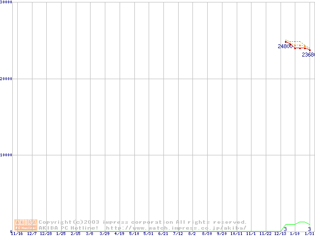 Athlon 64 3000+(2GHz,L2 512KB) バルクの価格推移