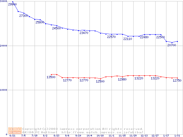 | [↑前グラフ]: | MKシリーズ (9.5mm,5400rpm,16MB,FDB)の最安値推移 |
