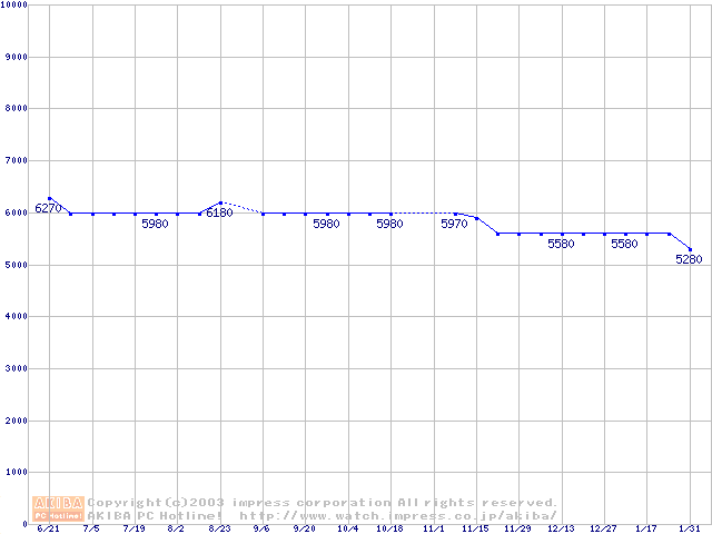 | [↑前グラフ]: | WD Caviar (7200rpm,UltraATA/100,2MB)の最安値推移 |