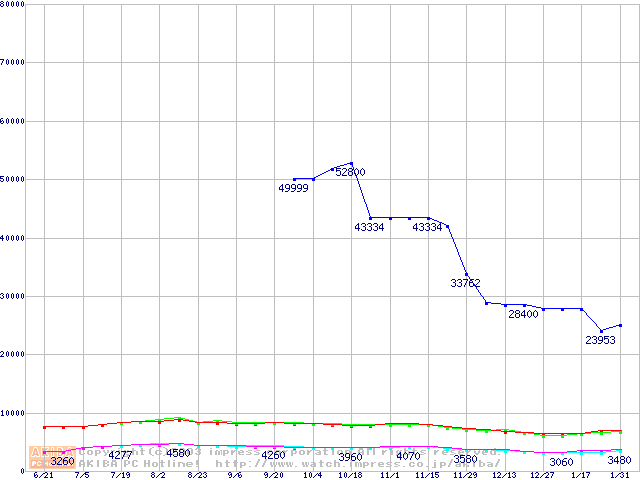 PC3200(DDR400) DDR SDRAM DIMMの最安値推移