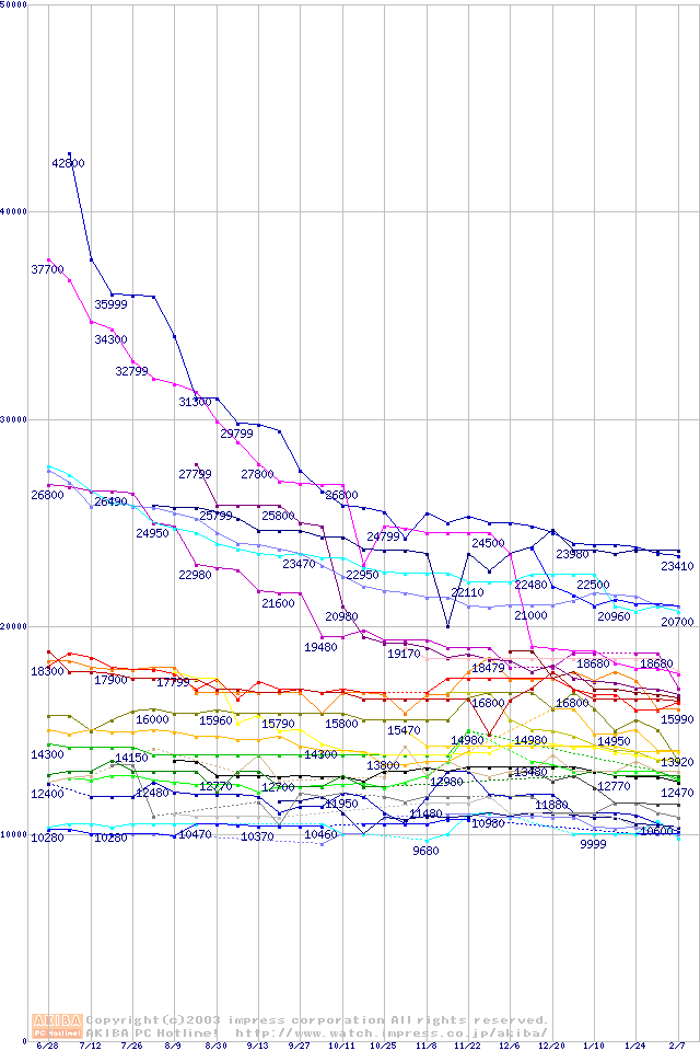 2.5インチHDD主要製品の最安値推移