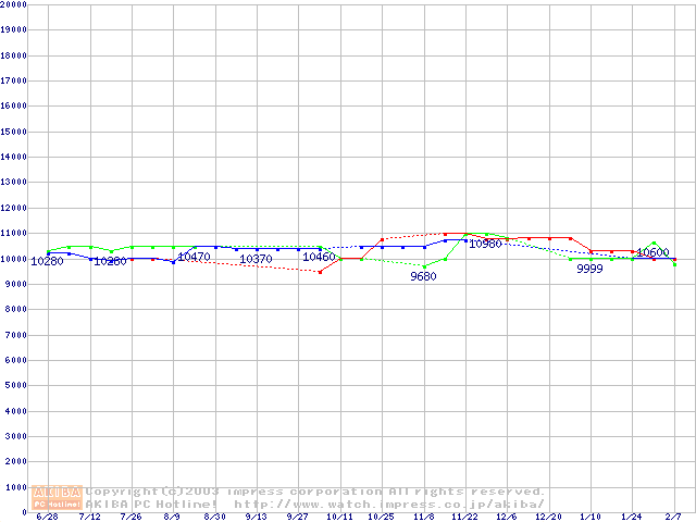 | [↑前グラフ]: | 2.5インチHDD主要製品の最安値推移 |