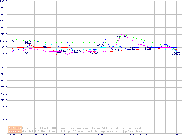 | [↑前グラフ]: | 2.5インチHDD 20GB~40GB未満(9.5mm厚)の最安値推移 |