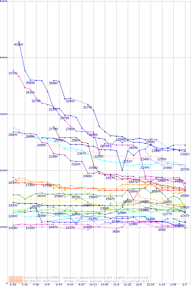 2.5インチHDD 80GB以上(9.5mm厚)の最安値推移