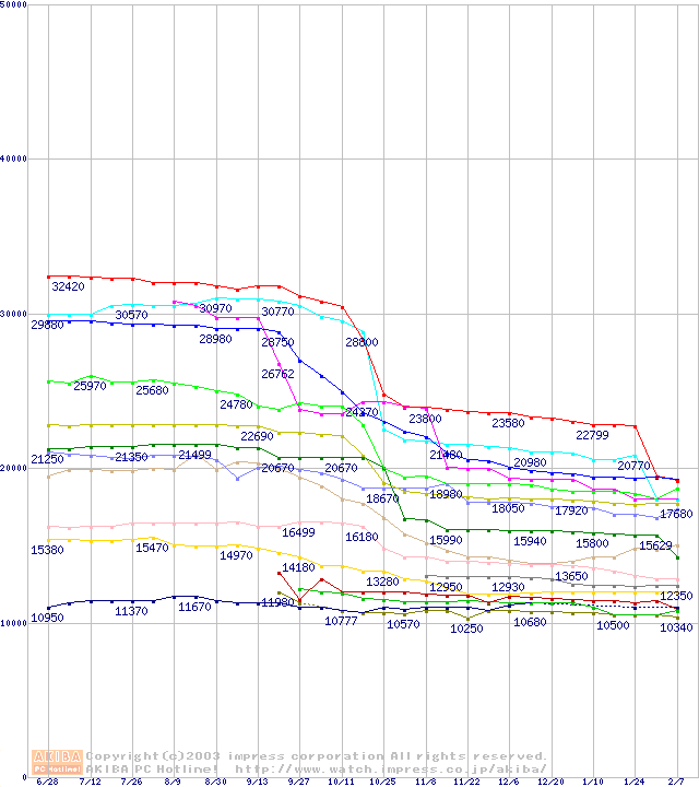 CPU主要製品(最安値2万円~3万円未満)の最安値推移