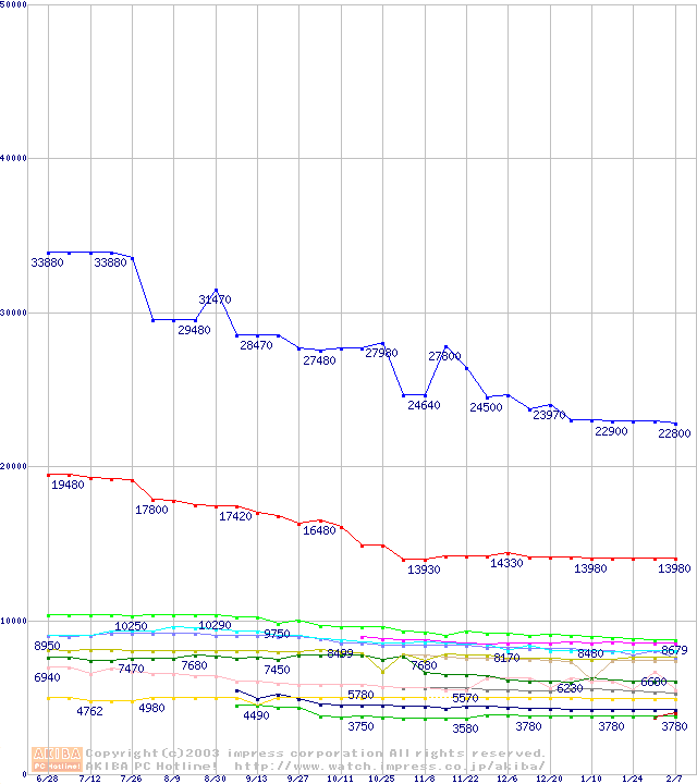 Socket A・FSB 266MHzの最安値推移