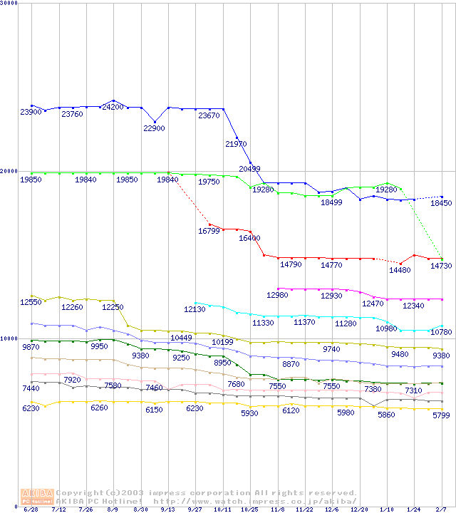 Socket 370・FSB 133MHzの最安値推移