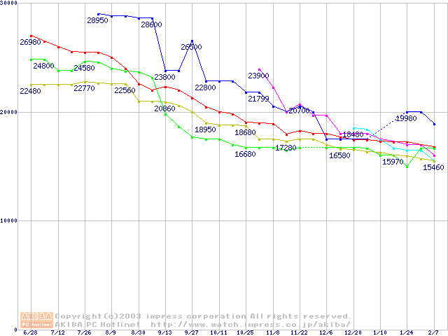 HDD 250GB以上の最安値推移