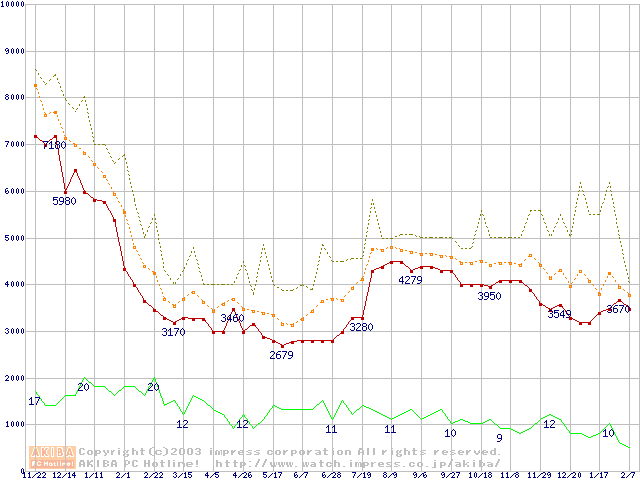 PC2100(DDR266) DDR SDRAM DIMM(CL 2.0)の最安値推移