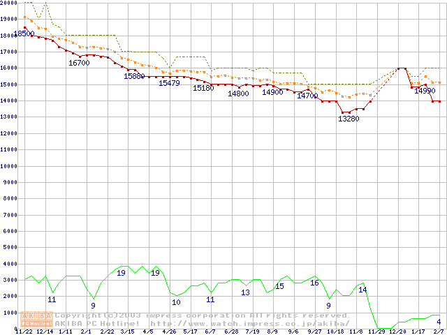 Travelstar 40GNX IC25N040ATCS05 (40GB)の価格推移