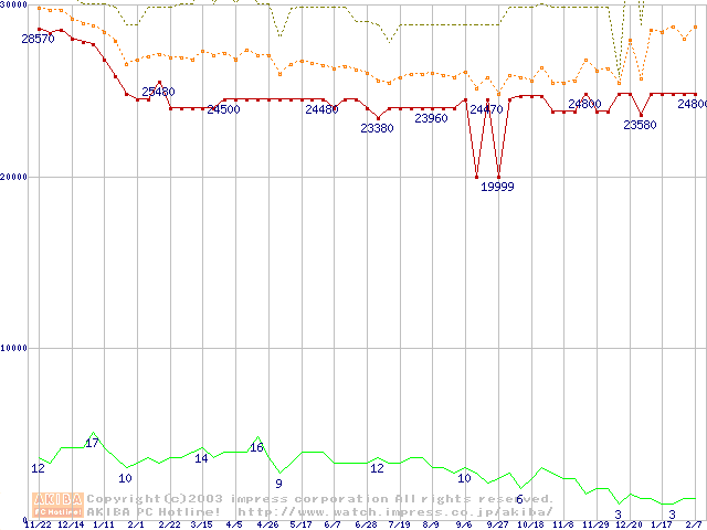 PC800-40 DRDRAM RIMMの最安値推移
