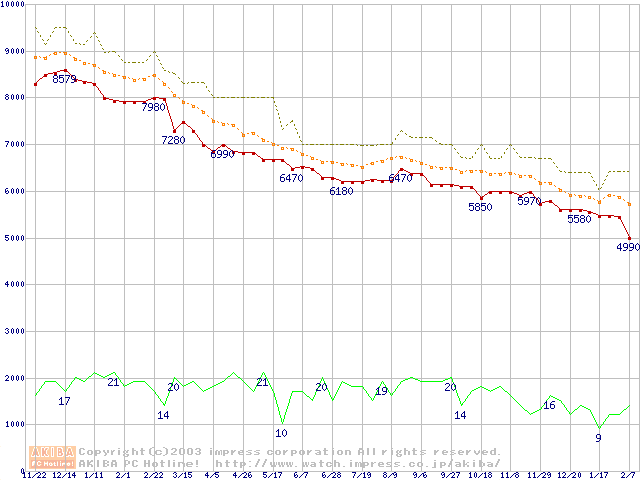 Fireball 3 (5400rpm,UltraATA/133,2MB,FDB)の最安値推移