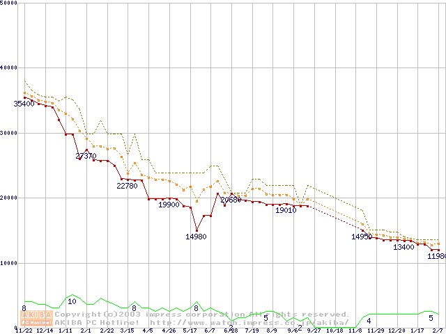 WD Caviar (7200rpm,UltraATA/100,2MB)の最安値推移