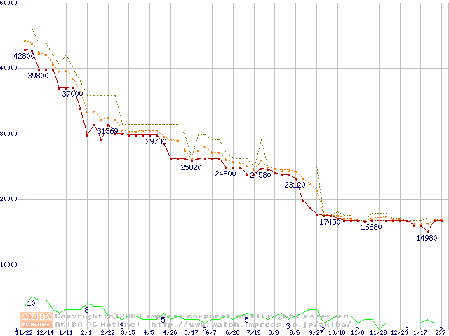 WD Caviar (7200rpm,UltraATA/100,2MB)の最安値推移