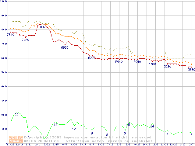 DiamondMax Plus 8 (7200rpm,2MB,UltraATA/133,FDB)の最安値推移
