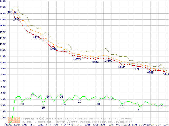 DiamondMax 16 (5400rpm,UltraATA/133,2MB,80GB/Platter,FDB)の最安値推移
