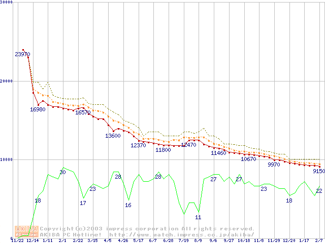 DiamondMax Plus 9 (7200rpm,8MB,UltraATA/133,FDB)の最安値推移