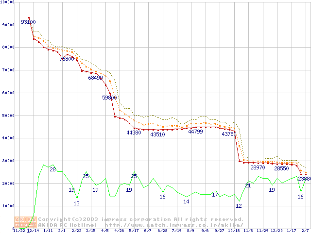 Socket 478 (micro-PGA,FSB 533MHz,L2 512KB,Hyper-Threading,Northwood)の最安値推移