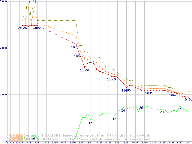 DiamondMax Plus 9 (7200rpm,8MB,SerialATA/150,FDB)の最安値推移