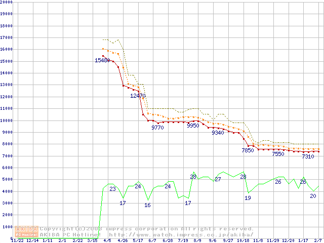 Socket 478 (micro-PGA,FSB 400MHz,L2 128KB,Northwood)の最安値推移