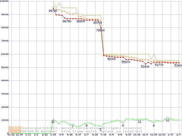 Xeon 3.06GHz(FSB533) リテールパッケージの価格推移