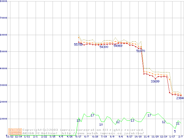 Athlon XP 3200+ (2.2GHz) リテールパッケージの価格推移