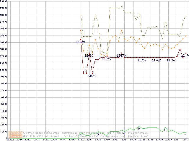 PC3200 DDR SDRAM 512MB(CL3) ECCの価格推移