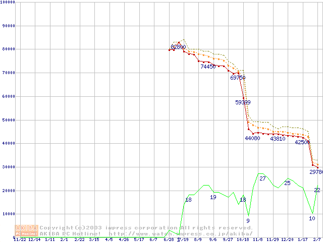 Socket 478 (micro-PGA,FSB 800MHz,L2 512KB,Hyper-Threading,Northwood)の最安値推移
