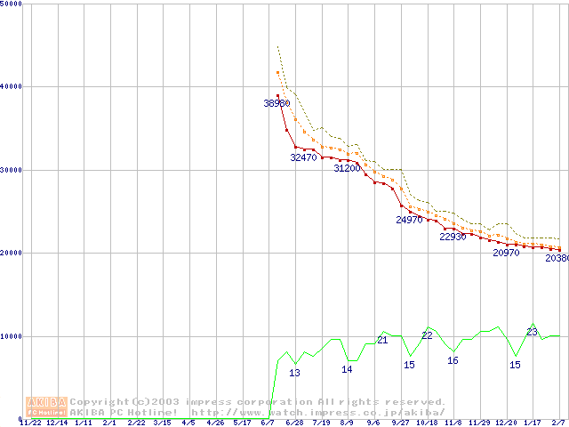 MaXLine Plus II (7200rpm,8MB,UltraATA/133,FDB)の最安値推移