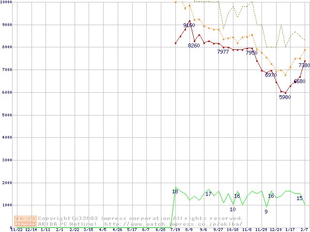 PC3200(DDR400) DDR SDRAM DIMMの最安値推移