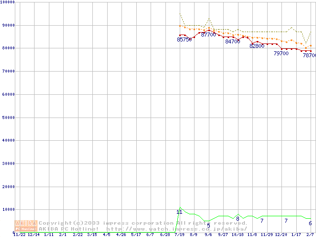 Socket 604 (micro-PGA,FSB 533MHz,L2 512KB,Prestonia)の最安値推移