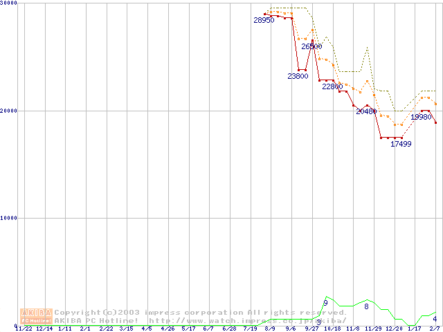 WD Caviar (7200rpm,SerialATA,8MB)の最安値推移
