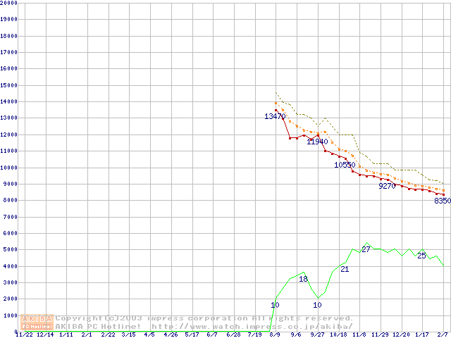 Deskstar 7K250 (7200rpm,UltraATA/100,FDB)の最安値推移