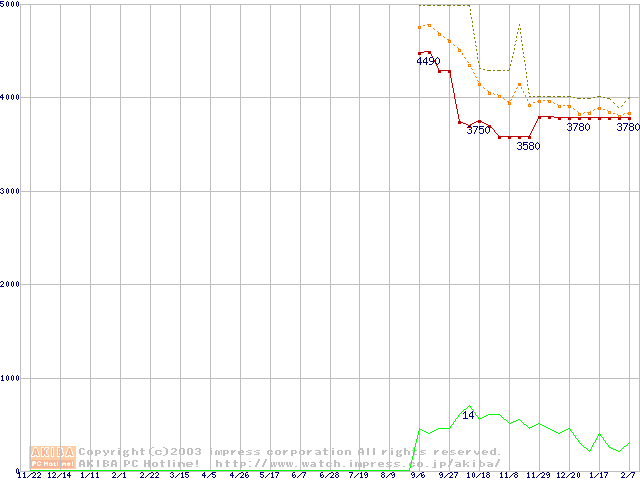 Socket A (OPGA,FSB 266MHz,L2 64KB,Applebred)の最安値推移