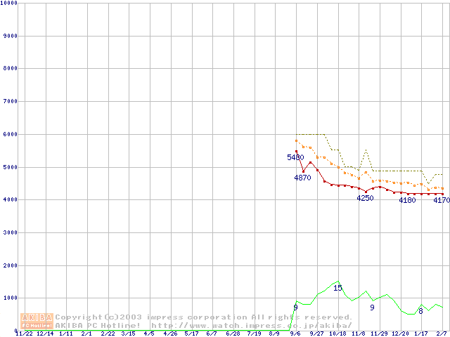Socket A (OPGA,FSB 266MHz,L2 64KB,Applebred)の最安値推移
