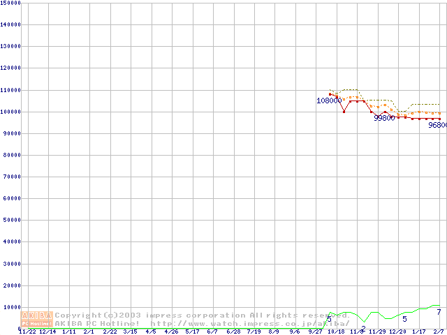 Socket 604 (micro-PGA,FSB 533MHz,L2 512KB,Prestonia)の最安値推移