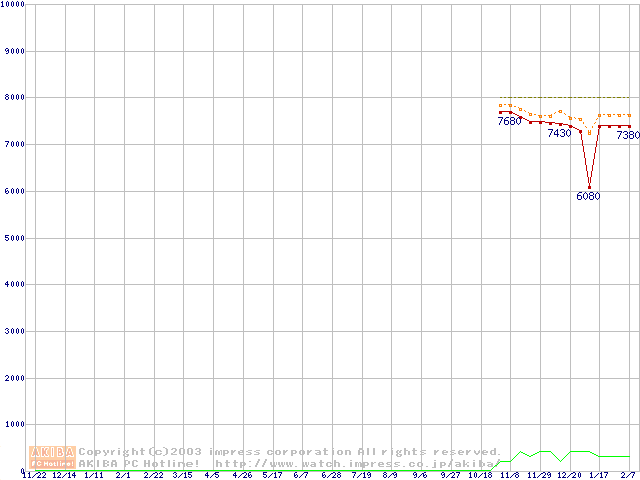 Socket A (OPGA,FSB 266MHz,L2 256KB,Thoroughbred)の最安値推移
