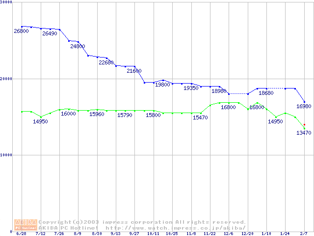 | [↑前グラフ]: | MKシリーズ (9.5mm,7200rpm,16MB,FDB)の最安値推移 |