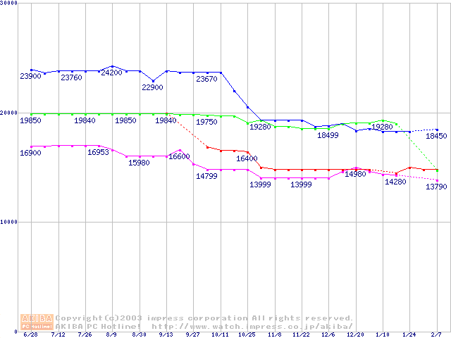 | [↓次グラフ]: | Socket 604 (micro-PGA,FSB 533MHz,L2 512KB,Prestonia)の最安値推移 |