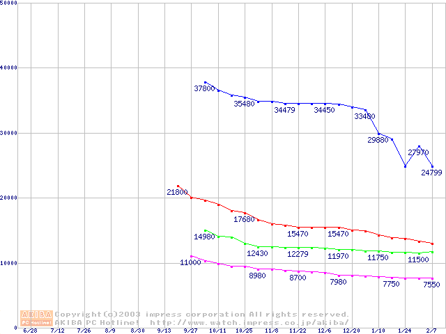 | [↓次グラフ]: | Deskstar 7K250 (7200rpm,UltraATA/100,FDB)の最安値推移 |